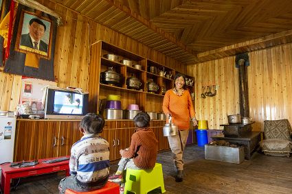 觀看圖片展的贈(zèng)科小學(xué)退休老校長(zhǎng)阿伙布老人一邊指著贈(zèng)科鄉(xiāng)安卡村的全貌圖,一邊自豪地給身邊觀展的人群說:“這是我的家鄉(xiāng),在六七十年代的時(shí)候,村里房子是沒有樓層的土木房。現(xiàn)在,村里的人居環(huán)境有了很大改善,房子也修得很漂亮??吹郊亦l(xiāng)的變化,我非常高興。”