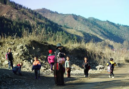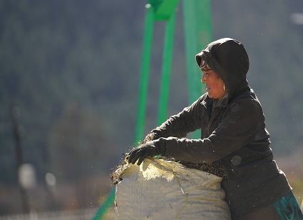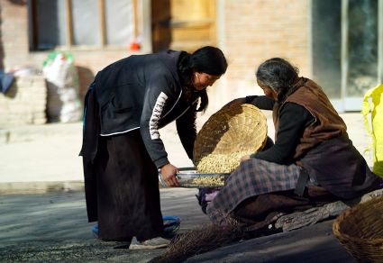 一群孩子會(huì)準(zhǔn)時(shí)來小二樓叫我,要去密林,要去山岡,要去尋找?guī)в薪?jīng)文的瑪尼石,還要去那個(gè)神秘的洞頂。比孩子們更準(zhǔn)時(shí)的是掛在小二樓上的四個(gè)大喇叭,鳥雀剛醒來,廣播就開始了,就必須要起來了。穿過巷道,和打豆子的人們一起享受勞動(dòng)的幸福。我們在一起,等待著下午的廣播,因?yàn)閺V播會(huì)給我們帶來無盡的喜悅。