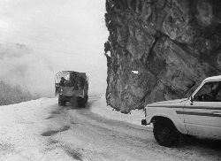 一九九七年十一月二十四日,連續(xù)多日大雪,把整個二郎山裹得嚴嚴實實,白茫茫一片。陣陣山風吹過,大霧就像瀑布一樣,從山頂直往下翻涌傾瀉。 一大早,州交通局打冰除雪排險的干部職工就從二郎山管理站直奔山埡口。載有防滑砂的大貨車穿迷霧,繞山梁,向山頂埡口疾馳。由于氣溫太低,霧又大,車上的擋風玻璃很快就結(jié)下了冰,路面打滑非常嚴重。前面車輛堵了起來,排險人員只好下車步行。 大霧彌漫,能見度很底,陰霾的天空又飄起了紛紛揚揚的雪花,剌骨的寒風陣陣襲來,只聽見車蓬布在風中“嗶剝”作響,卻看不見前面到底堵了多少車。排險人員只好相互攙扶踩著冰滑的邊路艱難地向行。好不容易來到堵在最前面的車子面前。原來是一輛載著原木的東風牌大貨車側(cè)滑在公路上,把整個公路堵死了。 局領(lǐng)導當即指揮大家用鋼釬、鐵鎬和鋤頭處理冰道,沒有撮箕,大家借來加水桶裝運冰雪……氣溫仍在急劇下降,剛從雪堆里刨出來的路,又被結(jié)起一層冰,就像地面上澆上了油,這就是冰雪道上有名的“桐油凌”。 有二位老同志不顧年老體弱,積極參與打冰除雪,一個在打冰時,被彈起的冰碴把腦門劃了一個口子,鮮血直往外冒。有人想幫他包扎,他堅決不干,自己就用手帕按住,把帽子向下拉蓋住傷口就算了。血從手帕中浸透出來,與眉毛上的冰凌結(jié)在一起。氣溫太低,冰層太厚,十字鎬每挖一下,多數(shù)情況下也就是挖下一個白點而已。不一會兒,另一位老同志已是滿頭大汗,大家勸他休息一下,他卻說:趁著現(xiàn)在雪不是太大,早點把主道上的冰雪多除點,過往二郎山的車輛就多一份安全。 排險人員的手凍紅了,刨冰雪碰傷的指頭還流著鮮血,身上蒸發(fā)的熱氣,把衣領(lǐng)口、袖子口和褲子口結(jié)成了冰,可是,誰也沒有吭一聲。 ……受堵車輛終于向前開動了。 風,越刮越猛,雪,越來越大。 防滑車在冰雪道上艱難地向前爬行著,車箱上面的職工們揮舞的洋鏟向路面撒著防滑砂。一路上風絞雪,防滑車象一頭不聽使喚的牛,顛簸、亂竄,好不容易才來到260(二郎山最險處),對這里“桐油凌”路面進行重點防滑處理后,防滑車又返回來,開始向山頂進發(fā)……風雪二郎山上打冰除雪、防滑排險,看似沒有驚天動地的壯舉,身臨其景才知其艱難辛苦。難怪當年每每經(jīng)過二郎山冰天雪地奇險路段的車,都會向風雪中屹立路邊的交通系統(tǒng)排險保暢通的職工們鳴笛致敬,風雪中的那份情彌足珍貴。 川藏線上的老司機傳下來一首傷心的順口溜:“車過二郎山,如闖鬼門關(guān),萬幸不翻車,也要凍三天!”其險峻實為罕見,尤其是途經(jīng)二郎山260(公路公樁)處,曾被淡虎色變的人稱為“鬼招手”的險路段。 1983年1月3日,有著安全行車44萬公里記錄的一位駕駛員開著輛嶄新的東風牌貨車,同行還有兩名職工,夜行二郎山,在彌天大霧中神秘地“失蹤”了。十五天后,搜山的人才用望遠鏡看到260公里路樁處的山崖下,有一塊汽車破篷布掛在樹枝,猶如招魂的凄厲幌幡在冷風中招搖晃動。鋼纜繩吊著搜山的人下到崖下400米深處的谷底。扒開一座座雪堆,叫人汗毛倒豎:雪堆下,盡是廢大梁、爛車廂、銹車頭和支離破碎的汽車,足有一個汽車連!一輛不知埋了多久的卡車廂里牛肉已腐爛,駕駛室里坐著三具發(fā)黑的僵尸……其狀慘不忍睹!