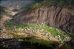 在山頂,放眼望去,群山都籠罩在一片霧氣中,朦朦朧朧的,像披上了一層神秘的面紗,往山下看去,霧氣中隱約可見一個美麗的小村莊,這就是那傳說中沒有憂傷,沒有困苦的香格里拉。