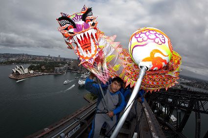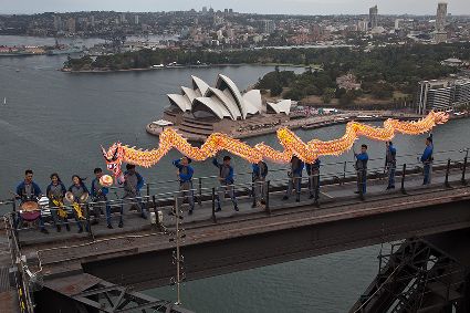 中國(guó)傳統(tǒng)舞龍亮相悉尼海港大橋