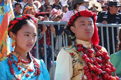 于是,年復(fù)一年,“漢子”與“花”兒們便挺拔、綻放在漢語(yǔ)表達(dá)的一個(gè)極點(diǎn)之上,被玄想,被渴望。對(duì)遠(yuǎn)道而來(lái)的人們或是世代居于高原的子民而言,康巴漢子與康巴之花不僅僅是美的化身,通過康巴漢子與康巴之花的評(píng)比,人們?cè)趯ふ乙粋€(gè)早已失落卻又天然渾成的世界。