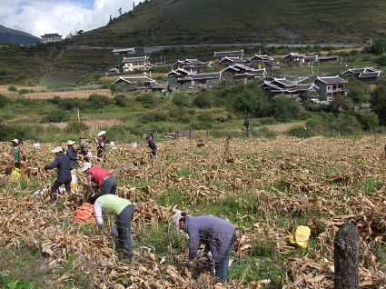 這是一個豐收的季節(jié),這是一個農(nóng)人們充滿歡聲笑語的季節(jié)。10月8日,記者走進(jìn)九龍縣呷爾鎮(zhèn)華丘村,看到面貌一新的藏寨掩映在成片的玉米地里,正是收獲玉米的季節(jié),鄰里相幫,大家在密密匝匝的玉米地里收獲玉米,農(nóng)人們在玉米地里簡單午餐,談笑風(fēng)生,議論今年的收成,擺談如何調(diào)結(jié)構(gòu)增加收入,說家長里短,既有勞作的辛苦,又有鄰里團(tuán)結(jié)的深厚情誼。放眼望去,漂亮的藏寨、忙碌的人群,組成一組人與自然和諧的山村風(fēng)景畫。(記者 田杰 馬建華 攝影報(bào)道)