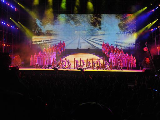 5月29日晚,一臺由中共瀘定縣委、瀘定縣人民政府主辦,四川師范大學承辦的瀘定縣紀念紅軍飛奪瀘定橋勝利80周年暨川藏公路開工65周年大型文藝晚會《永遠的豐碑》在瀘定縣瀘定橋廣場震撼上演,200多名演職人員參與演出,萬余人現(xiàn)場觀看。