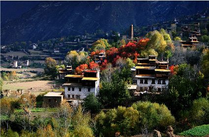 丹巴的秋是充滿靈動的季節(jié),天空中厚實的烏云在秋風(fēng)的吹佛下,聚集在天的一角,完全沒有了春夏兩季時云朵鋪天蓋地的感覺,白色的云團、黑色的山峰、黃色的樹葉、藍色的天幕,再加上白色的藏房,交錯變幻著,組成了靈動的山鄉(xiāng)美景。由于有秋風(fēng)的吹拂,漫天的煙塵終歸落在地面上,空氣中沒有了細小的微塵,陽光暢通無阻的透過潔凈天空,將暖意灑滿山鄉(xiāng)的每一個角落,此時的天空也仿佛更加的遼遠、透明,真正照應(yīng)了秋高氣爽這個詞匯。夜晚,趁著如水的月色,在這寒意漸濃的秋夜,在秋風(fēng)的伴隨下,漫步于秋葉滿地的小徑上。略帶些許憂傷,些許瑟縮,些許清幽,還有些迷離。我們的心緒,便在這變幻的夜色中時而沉重,時而飄飛,時而彌散在光怪陸離的夜色中。而我們飛揚的神思,竟然都化作了絕美的詞句,如翩翩粉蝶從我心間飛出,從我的指尖滑落,散落在秋蟲的呢喃里!丹巴的秋也是鳥雀成群的季節(jié)。當秋將遠山的樹木染上五顏六色的色彩時,許多鳥雀飛離自己的家園,唱著悅耳的歌聲,成群結(jié)隊的來到河谷底的村寨中,它們中不乏有羽翅鮮艷的小鳥,展開紅的白的綠的翅膀,嘰嘰喳喳的在田地間不厭其煩的起飛、降落,為寂靜的田野增添了無限的生機。