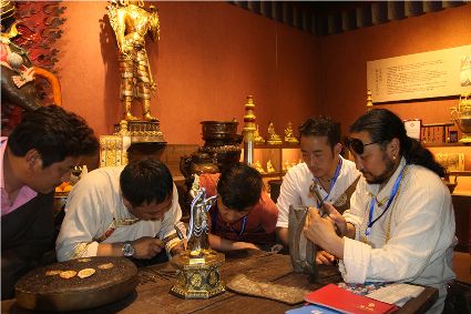 本屆非遺節(jié)期間,我州特色展館向游客展示了格薩爾彩繪石刻、藏族金屬鍛造技藝、藏文書法、噶瑪嘎孜畫派唐卡、阿西土陶燒制技藝、藏族牛羊毛編織技藝,南派藏醫(yī)藥等國家級、省級非遺項目。在歷時9天的活動中,我州的非物質(zhì)文化遺產(chǎn)傳承人帶來了數(shù)百件非遺手工藝精品。大量的手工藝商品聚集展館的展示區(qū),供參觀者挑選,有些非遺傳承人還在現(xiàn)場為顧客現(xiàn)場制作作品,向廣大參觀者展示了民族手工藝的制作流程。