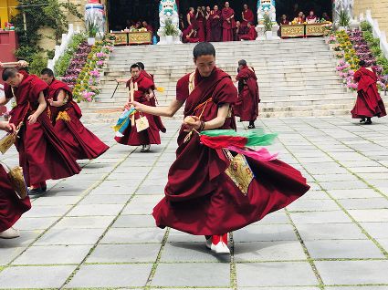 為紀(jì)念釋迦牟尼佛的誕辰(浴佛)日,康定群眾每年農(nóng)歷四月八日都要舉行隆重盛大的紀(jì)念活動(dòng),稱“四月八”轉(zhuǎn)山會(huì),南無寺的跳神活動(dòng)就是其中之一。