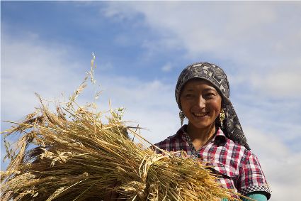 聯(lián)合收割機已在高原大地施展威力。那些平坦的大地里,拖拉機的穿梭,收割機的鳴唱,耳聞目睹,隨外可見。在山地間,大型機械無法進入的地方,原始的勞作仍沒失去它本身的價值。“汗滴禾下土,粒粒皆辛苦”的場面仍然存在……農(nóng)人的歡歌喜語浸漫于天地間,豐收的喜悅早把辛勤的勞作沖淡。