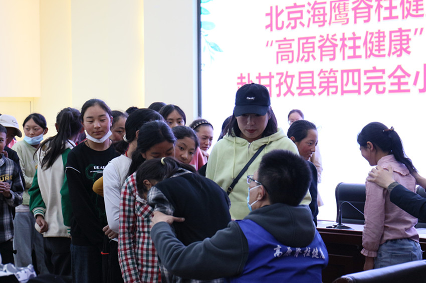 日前,北京海鷹脊柱健康公益基金會“高原脊柱健康”醫(yī)療專家團(tuán)隊(duì)到甘孜縣小學(xué),為孩子們逐個進(jìn)行脊柱篩查和診斷,其中有31名輕微脊柱側(cè)彎的學(xué)生、5名重度脊椎側(cè)彎患者納入赴京手術(shù)名單。圖為醫(yī)護(hù)人員正在篩查。 甘宣 攝影報(bào)道