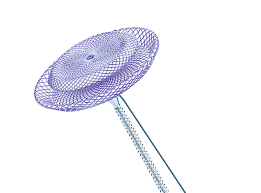經(jīng)過(guò)反反復(fù)復(fù)的嘗試,最終把封堵器做成了雙盤內(nèi)凹結(jié)構(gòu),并通過(guò)高溫?zé)岫ㄐ图疤厥狻版i扣”設(shè)計(jì)等,實(shí)現(xiàn)“非形狀記憶的材料達(dá)到形狀記憶的功能”。