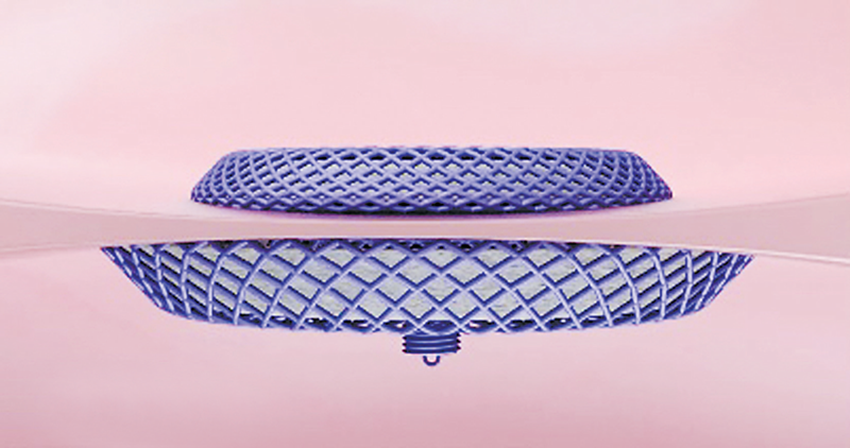 既然有了“孔”,就得想辦法“堵”。生物可降解卵圓孔封堵器由一大一小2個(gè)內(nèi)凹狀的“圓盤”連接在一起,細(xì)看呈蜂窩狀,就像一個(gè)“塞子”,牢牢扣住左右心房的“墻壁”。