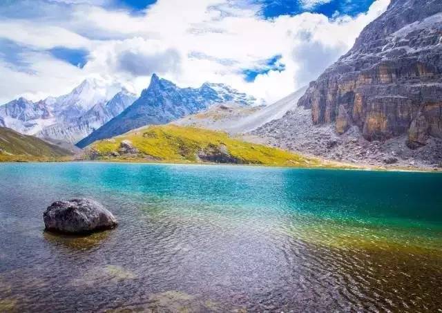白海子位于康定老榆林鄉(xiāng)旁,海拔4500米,它不僅是湖泊,也是貢嘎山系的一座雪峰。