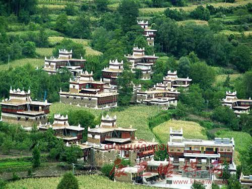 甲居藏寨象群星撒落般坐落在依山傾斜,起伏向上的緩坡上?;蛐锹淦宀?,或稠密集中,或在高山懸崖上,或在河壩綠茵間,不時(shí)炊煙裊裊,煙云繚繞,搖搖晃晃,若幻若真,真可謂“別有天地非人間。藏寨對(duì)岸,但見萬丈絕壁凌空筆立,縱橫連綿的群峰象征一幅幅看不盡的畫廊,每座山峰都有一個(gè)美麗動(dòng)人的神話故事。