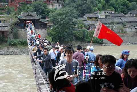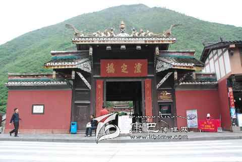瀘定橋始建于清康熙44年 (1705年),次年五月竣工,康熙御筆題名“瀘定橋”。橋身共由13根鐵鏈組成,其中底鏈九根,扶手四根。橋東西兩端各有橋臺(tái)一座,西端觀音閣下有康熙題寫之《瀘定橋》石碑,橋東有《御制瀘定橋碑記》,瀘定橋是大渡河上第一座穩(wěn)固的大鐵索橋。1935年中國工農(nóng)紅軍晝夜行軍240里,英勇飛奪瀘定橋,打開了北上抗日的通道,“十三根鐵鏈托起了一個(gè)共和國”,毛澤東同志為此寫下了“大渡橋橫鐵索寒”的壯麗詩句,瀘定橋自此名揚(yáng)四海,成為中國紅色第一橋。為紀(jì)念紅軍飛奪瀘定橋這一壯舉和奇跡,于1985年在沙壩建立了“紅軍飛奪瀘定橋紀(jì)念館”和紀(jì)念碑。紅軍飛奪瀘定橋紀(jì)念碑由鄧小平同志題寫碑名,聶榮臻元帥題寫碑文。紅軍飛奪瀘定橋紀(jì)念館收集了紅軍飛奪瀘定橋時(shí)用過的門板、槍、炮、紅軍的旗幟、文件箱、信件證明、標(biāo)語、戰(zhàn)報(bào)、手雷、馬刀等珍貴文物110余件以及177幅歷史照片。瀘定橋是全國首批重點(diǎn)文物保護(hù)單位,是國家重點(diǎn)培育的 “紅色旅游區(qū)”、重點(diǎn)組織規(guī)劃的 “紅色旅游精品線路”和重點(diǎn)建設(shè)的 “紅色旅游經(jīng)典景區(qū)”。