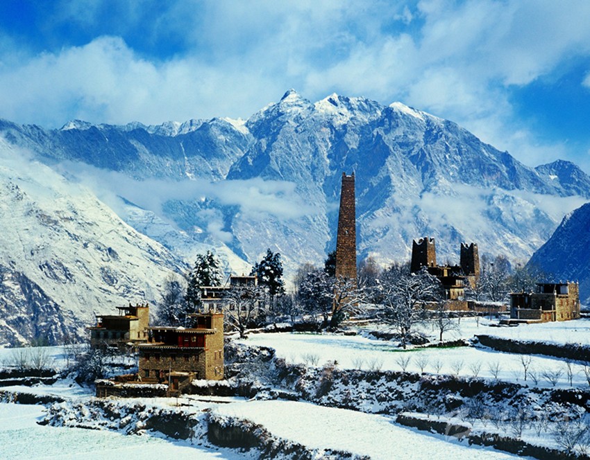 冬季的丹巴,山上銀裝素裹,山下田園蔥綠。藏寨和古碉依山而建,錯(cuò)落有致,與自然合二為一。