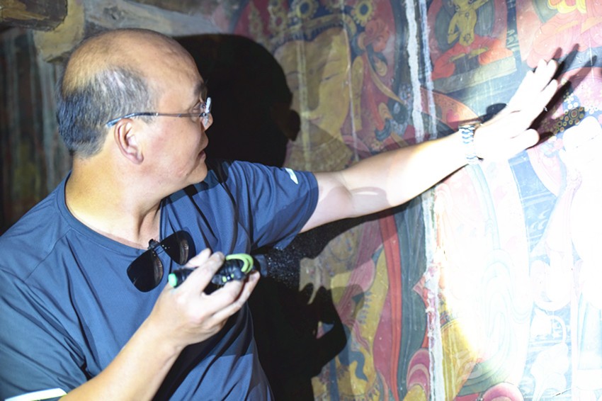 網(wǎng)訊(記者 唐闖 /圖)82日, 在我州石渠縣真達(dá)鄉(xiāng)嘛達(dá)村嘛達(dá)寺一座長期封閉的護(hù)法殿內(nèi),故宮博物院藏傳佛教文物研究所所長、研究員羅文華率領(lǐng)的團(tuán)隊(duì)發(fā)現(xiàn)相當(dāng)完整的明代藏傳佛教壁畫和泥塑雕像,這是迄今為止石渠縣境內(nèi)發(fā)現(xiàn)的最為重要的藏傳佛教遺存之一,此次發(fā)現(xiàn)填補(bǔ)了藏傳佛教研究的多項(xiàng)空白。
