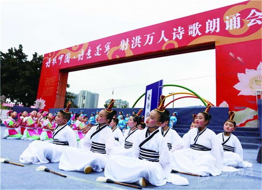 據了解,本次活動是《詩刊》2016年度陳子昂詩歌獎系列活動之一,參與人數之多、規(guī)模之大,在射洪縣尚屬首次。現場由射洪中小學生和企事業(yè)單位組成的方陣和演出隊伍,以載歌載舞或配樂詩朗誦等形式登臺表演, 內容以經典詩詞為主,也有圍繞當前中心工作而創(chuàng)作的新詩。這是文化的傳承,更是血脈的延續(xù)。參加詩歌朗誦會的最小的4歲,或許他們不懂文字背后的美,并不理解字里行間透露出的人生況味,但他們在射洪這樣的文學滋 養(yǎng)中出生、成長。