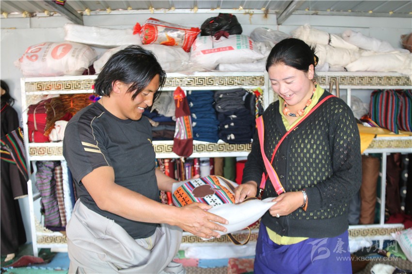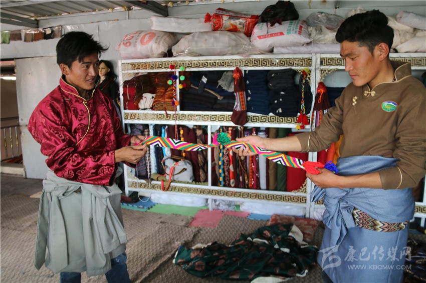 安孜鄉(xiāng)作為白玉縣海拔較高的鄉(xiāng)鎮(zhèn)之一,夏天是十分短暫的,連日來的晴好天氣,也透著絲絲寒氣。牧民阿剛想要量身定做一套過冬的藏裝,913,他來到白玉縣阿察鎮(zhèn),一家民族服飾商貿(mào)公司吸引了他的目光?!拔覀冞@里的服裝面料是本地羊毛和從浙江進(jìn)的上等面料,做工考究,很多工序是純手工制作,服裝樣式你可以根據(jù)你的喜好指定,我們包你滿意?!钡陠T仁真熱情地介紹。聽了仁真的介紹,阿剛用手捻了一下服裝用料的質(zhì)地,看到印有“祥陽措”商標(biāo)的精美包裝袋,商店里擺放的五彩斑斕、高端大氣的藏式男女服裝,他有些動心了?!吧a(chǎn)這些服裝的都是我們納塔鄉(xiāng)的牧民,你可以考察我們的服裝用料、生產(chǎn)流程,再作打算?!比收鏌崆檠笠绲亟榻B說。