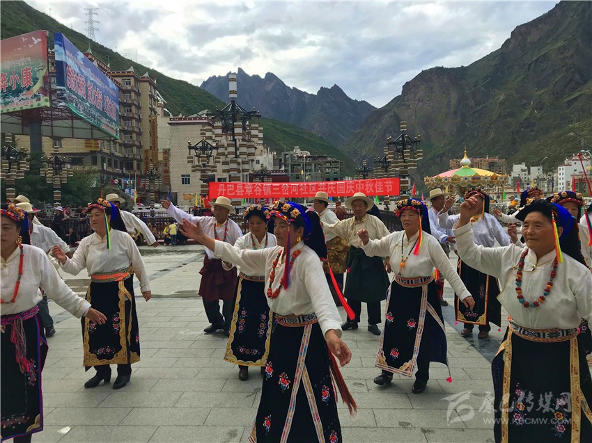 10月2日,在木雅鍋莊悠揚(yáng)的旋律和輕盈的舞步中,歷時(shí)兩天的“2017康定情歌國(guó)際音樂節(jié)”盛大開幕,作為“五大民俗展演”中的特色民俗歌舞表演部分,木雅鍋莊吸引了眾多游客的關(guān)注。木雅鍋莊來源于木雅人的日常生產(chǎn)和生活,是當(dāng)?shù)剞r(nóng)耕文化習(xí)俗的重要表現(xiàn),表演服飾多以棕紅色外套,紅、白色襯衫為主,表演者多佩戴紅頭繩、珊瑚、金銀等裝飾物。舞蹈分男女兩組,列隊(duì)圍桌成圓形,皆彎腰垂首隨領(lǐng)唱歌聲而舞。男組舞姿氣勢(shì)豪放,女組舞姿委婉優(yōu)雅。唱腔宛轉(zhuǎn)悠揚(yáng),吸引了在場(chǎng)觀眾冒雨駐足觀看,有的甚至情不自禁隨著舞群踏起了舞步,融入到康巴文化的神秘魅力當(dāng)中。