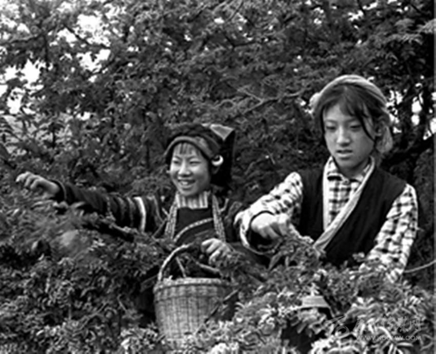 藏彝姑娘喜摘花椒。