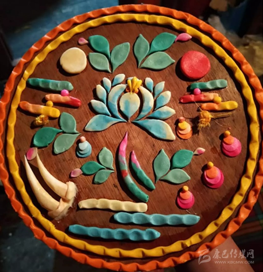 有傳說稱641年文成公主進(jìn)藏,帶去一尊釋迦牟尼12歲等身像并將其供奉于拉薩的大昭寺,當(dāng)?shù)厝罕娪盟钟妥龀苫ü┇I(xiàn)于佛前,以示崇敬之心,后各藏傳佛教寺院相繼使用,視為禮佛珍品,獻(xiàn)酥油花遂成為正月祈愿大法會(huì)的重要內(nèi)容。在發(fā)展過程中,酥油花的塑造方式、花色品種、內(nèi)容題材和工藝技巧都不斷發(fā)生著變化。