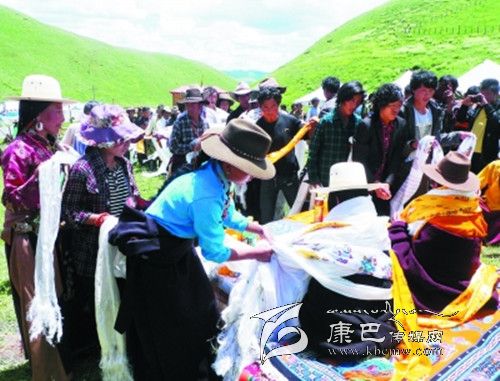 剛走進(jìn)宗塔壩子,記者便意識(shí)到一個(gè)人想象力的貧乏,現(xiàn)實(shí)中的宗塔草原以一種與眾不同的美把一個(gè)人的目光悄悄托起。四周長(zhǎng)滿牧草的小山像溫順的花瓣,靜靜包裹著那一片平坦的壩子,如果一個(gè)人眺望的目光足夠高足夠遠(yuǎn),山和壩子的造型會(huì)讓人聯(lián)想到一朵蓮花,而壩子里小點(diǎn)般的帳篷就像一顆顆蓮子,世世代代的宗塔人便在這蓮花般盛開(kāi)的天地里穿行、繁衍生息。