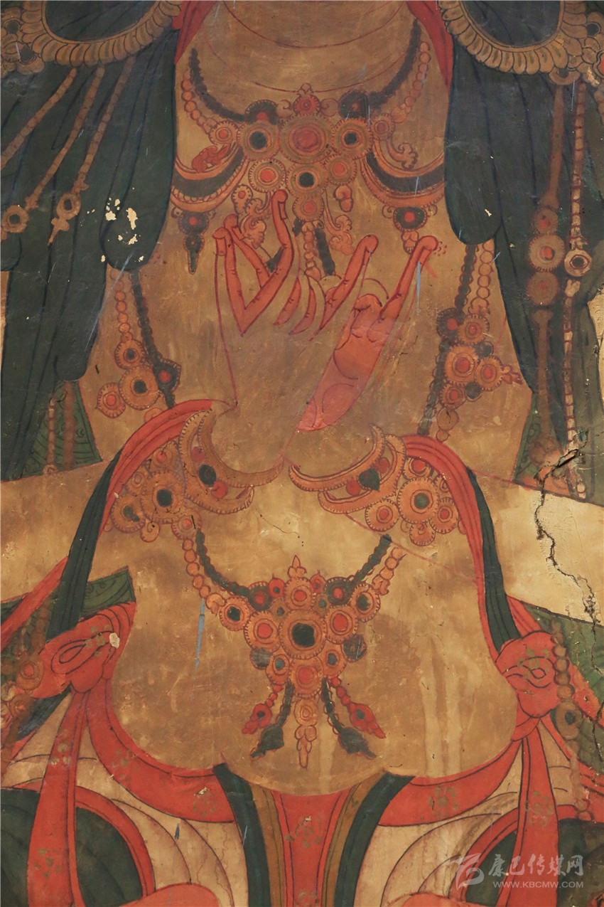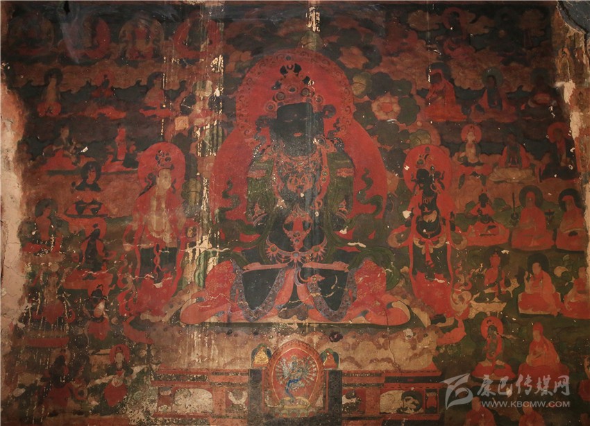 而吉祥天母殿內(nèi)的壁畫雖規(guī)模不及百柱大殿的壁畫大,但殿內(nèi)保存的壁畫歷史更悠久,畫風(fēng)更獨(dú)特,是一座取之不盡用之不竭的壁畫寶庫(kù),是目前當(dāng)?shù)乇4娴谋诋嫯?dāng)中規(guī)模最大最古老的壁畫之一。