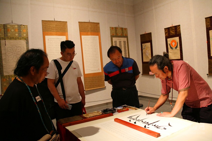 藏文書法現(xiàn)場演示。