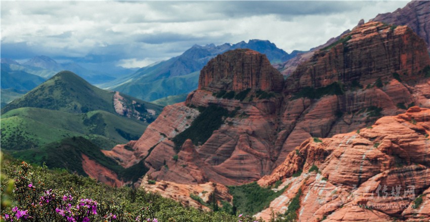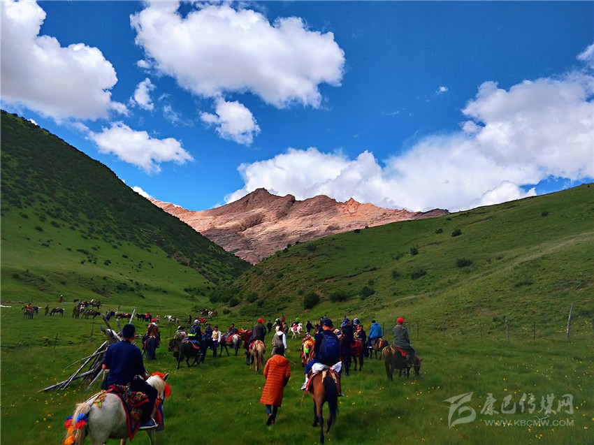 “快看,紅山千年之吻。”一位記者在馬背上驚呼。抬頭望去,兩座紅山緊依而立,伴隨藍(lán)天、白云與綠草,構(gòu)成一幅絕妙美景圖;在距丹霞地貌最近的埡口處,大家紛紛下馬觀賞丹霞風(fēng)光?!皦延^震撼、鬼斧神工”,專家學(xué)者無不驚嘆贊絕倫,即便天氣不佳,海拔較高,他們時(shí)而交流討論、時(shí)而拍照留戀,高昂情緒一直持續(xù)。
