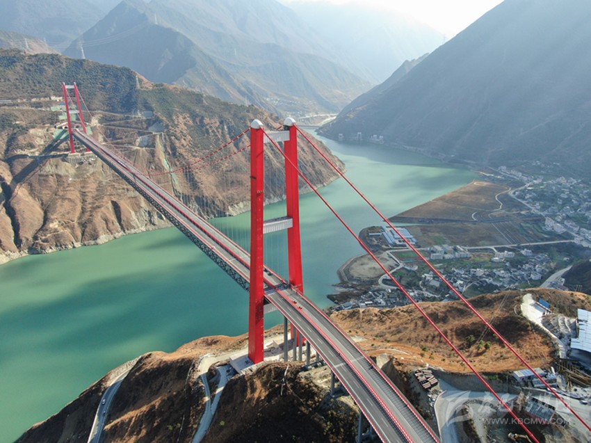 在瀘定,主跨1100米長的瀘定大渡河興康特大橋,好似一條巨龍橫跨在奔騰咆哮的大渡河上。遠處觀望,能感覺到峽谷的風猛烈地刮過,兩岸的山勢高拔嶙峋,仿若刀劈斧削一般讓人眩暈。大橋穩(wěn)穩(wěn)地橫架在兩山之間,它是人類智慧與創(chuàng)造力的結(jié)晶。