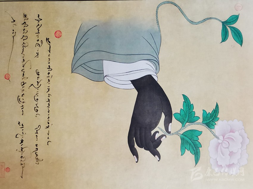 按照耷·瓊培所說(shuō),本文開(kāi)頭提到的那副唐卡畫(huà)也有著特殊的意義。據(jù)了解,該幅唐卡畫(huà)名為《紅黑白》,整幅畫(huà)旨在表達(dá)無(wú)所謂手腕的黑白,艷麗與秀雅,完美與尊崇,源自手心的花莖就會(huì)被潔凈的細(xì)流滋養(yǎng),最終盛開(kāi)蓮花簇簇。