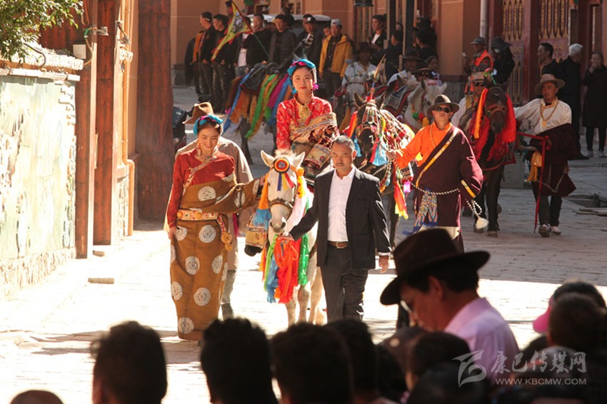 拍攝組所到之處,當?shù)攸h委和政府給予了高度重視與鼎力支持。雅江縣和理塘縣安排縣委宣傳部部負責相關事宜,指定專人對接,協(xié)調解決拍攝過程中的問題;巴塘縣安排分管領導召集相關部門,召開協(xié)調會議,組織各涉及單位做好配合工作,最大限度地為攝制組排憂解難,創(chuàng)造條件。為了配合劇組拍攝,在很短的時間內(nèi),組織由學生、退休干部和群眾組成的千人弦子表演。五彩田園景觀棧道上,胡琴聲輕輕回蕩,玫瑰紅彩袖飄揚,上演了一場美輪美奐的視覺盛宴,成為該片展現(xiàn)高原江南鵬城巴塘濃墨重彩不可多得的鏡象。巴塘老街上,剽悍粗獷的漢子們穿著盛裝騎馬而過,四十余匹駿馬頭戴紅纓,頸系銅鈴,身佩五色鞍子,神彩奕奕;女一號穿戴巴塘婦女服飾上演了一場盛大的婚禮場景,還原巴塘古老的婚俗文化,為電影錦上添花。