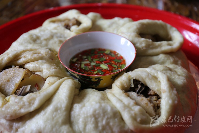 但是,家用的籠屜小,蒸出的數(shù)量有限,為了讓戰(zhàn)士們夠吃,婦女們就借來大籠屜,將包子做得更大,軍民共食蒸肉,暢敘友情。為了表達(dá)軍民魚水情,大家把蒸肉稱為“團結(jié)包子”。從此,“團結(jié)包子”這個涵蓋著軍民一家親意義的名字就延續(xù)下來。十八軍進(jìn)藏路過巴塘?xí)r正值端午節(jié),自此,每年端午節(jié),巴塘城區(qū)家家戶戶都要吃“團結(jié)包子”,以此紀(jì)念十八軍進(jìn)藏,也意寓全家團團圓圓。