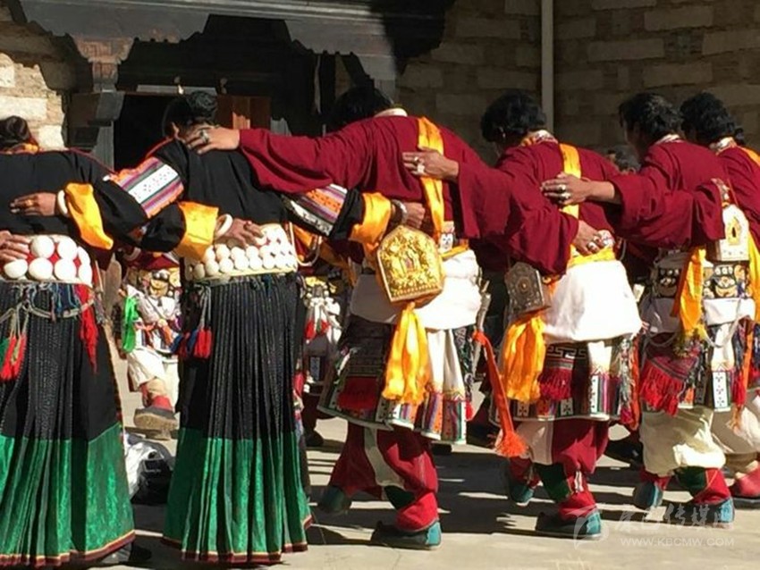鍋莊的節(jié)奏在表演中前后有三次變化,序舞時(shí)只要舞蹈者站好自己的位置,腳步緩慢地交替邁步即可,步伐很輕,力度也不強(qiáng);序舞過(guò)后逐漸進(jìn)入慢板舞蹈,最后進(jìn)入最能體現(xiàn)卓舞粗獷奔放特征的快板舞蹈階段,這時(shí),舞蹈者的情緒達(dá)到高潮,場(chǎng)面極為熱烈。