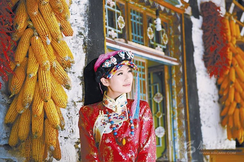 不知什么時候丹巴已被古碉?藏寨?美人谷這個名詞所取代。誠然,丹巴有歷經(jīng)蒼桑歲月仍傲然屹立于荒草萋萋之中的古碉,也有散落在田間地頭的白色藏房,它們用歲月遺留下來的符號無言地訴說著古老的過去。就在這美麗的土地上,綠水青山環(huán)繞中,充滿靈氣的古碉藏寨交相輝映,呈現(xiàn)出一幅天人合一的絕妙畫卷。也許是上天特別垂青于這塊土地吧!丹巴自古以來美女如云,一代代優(yōu)雅端莊,心靈手巧的姑娘,身著自已繡織的衣服,甩動如云的繡帕,舉手投足間自有一番清雅高華的氣質,盡顯東女國后裔風范。