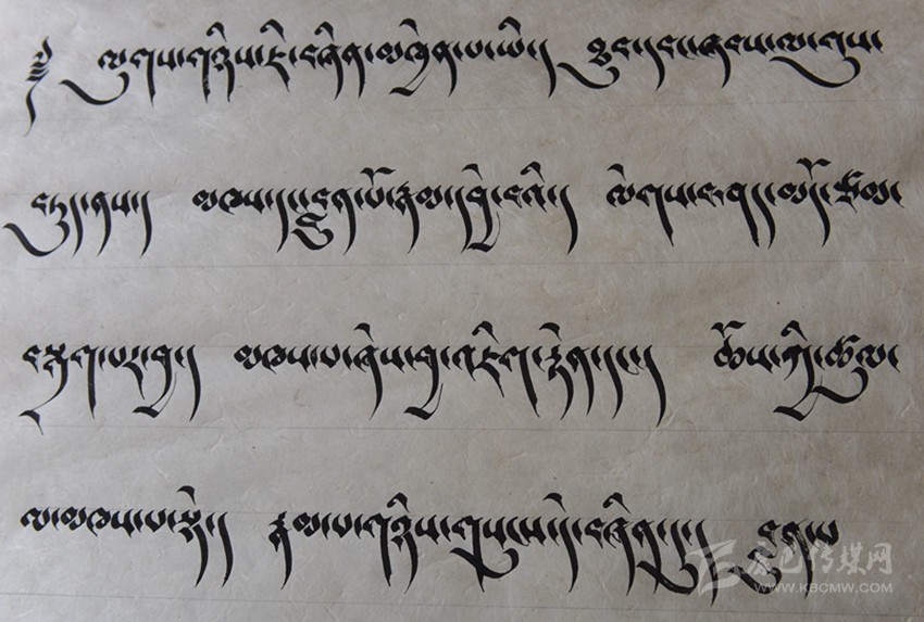 談到藏文書法作品,昂旺曲批喜歡用諸如“淳樸、干凈、善良”的字眼形容藏文書法作品的風(fēng)格。“一個(gè)字就是一個(gè)人,字有肉也有骨頭?!边@是昂旺曲批對(duì)“德珍派”書法的理解,在昂旺曲批眼中,藏文字都是有生命的,需要寧心靜氣方能通過手中的筆尖,彼此呼應(yīng)。