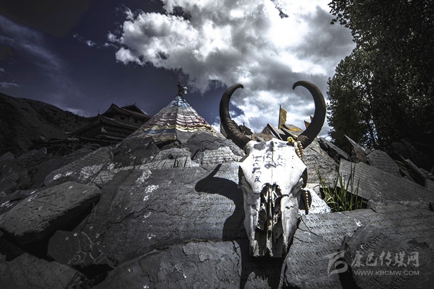 牦牛作為神圣的寶物,在藏區(qū)許多圣山、圣湖也賦予牦牛一種神性。西藏著名雅拉香布圣山、崗底斯神山、康區(qū)的雅拉圣山,山主為騎白色神牦牛的武士。甚至藏傳佛教儀軌中也有牦牛,著名護(hù)法吉祥天女為牛面護(hù)法,寺院金剛舞中有牛頭面具。洛桑卻晉大師所著的“六臂金剛儀軌吉祥天母酬供中云”,黑色長毛牦牛似烏云翻卷,高豎尖利犄角,發(fā)出十三聲怒吼。它似巍峨的青山,一聲怒吼震顫須彌山,常施乳汁皆意足,飄逸尾巴似雨后云朵。又如怙主群主儀軌中白雅(牦公牛)身有綠玉紋,敬予大自在怙主汝。鵬、獅、虎和牛,敬予男瑜伽神身。