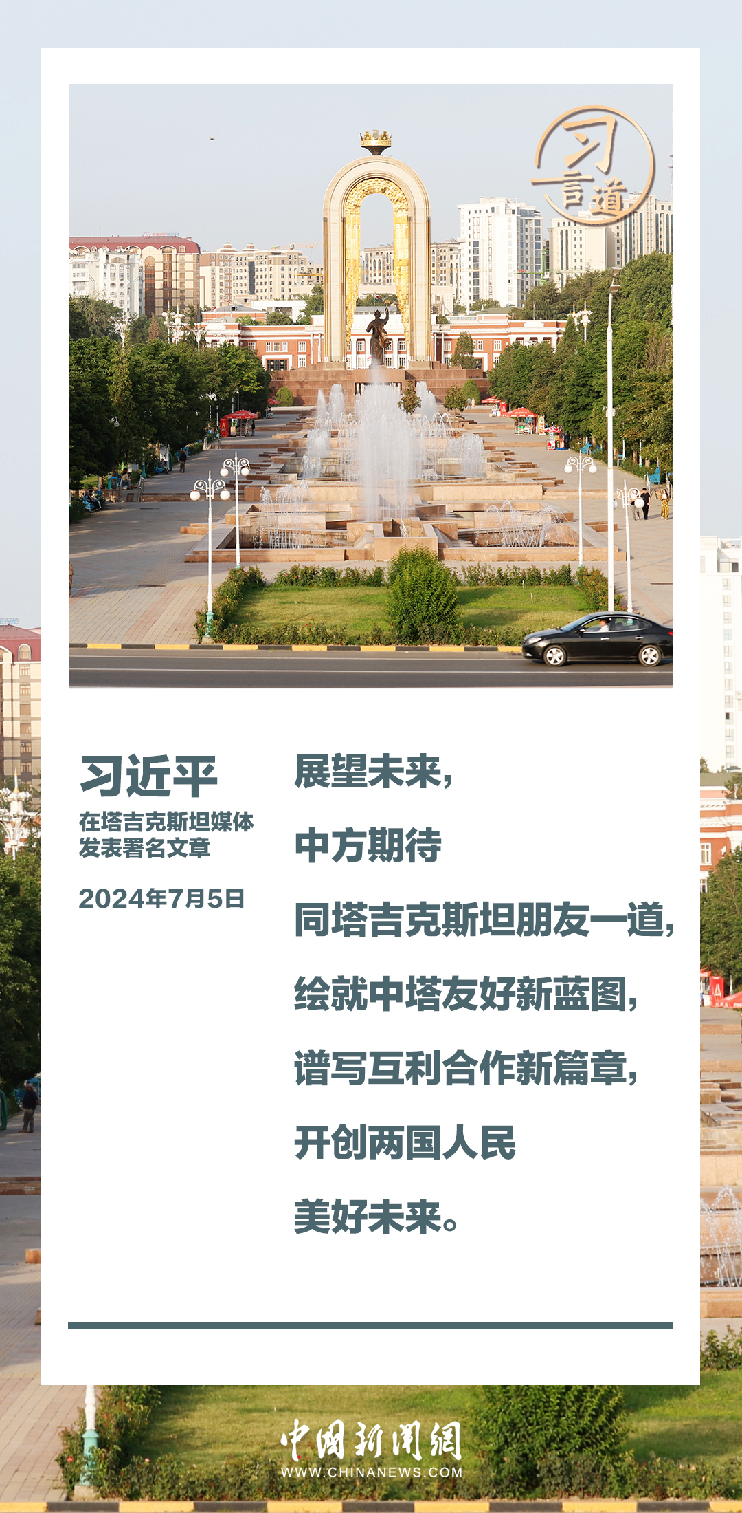 7月5日,在對塔吉克斯坦進行國事訪問之際,國家主席習近平在塔吉克斯坦《人民報》和“霍瓦爾”國家通訊社發(fā)表題為《共創(chuàng)中塔關(guān)系美好明天》的署名文章。習近平指出——