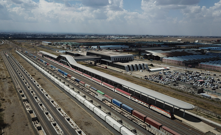 ??2017年5月,蒙內(nèi)鐵路建成通車。通車前夕,來華出席首屆“一帶一路”國際合作高峰論壇的時任肯尼亞總統(tǒng)肯雅塔,專門為習(xí)近平主席帶來了一件禮物。那是一枚由紅色中國結(jié)串起的金色鏤空窗花U盤,里面存儲著蒙內(nèi)鐵路的畫面:遼闊的東非草原上,一條鐵路線向前延伸,現(xiàn)代化車站拔地而起……