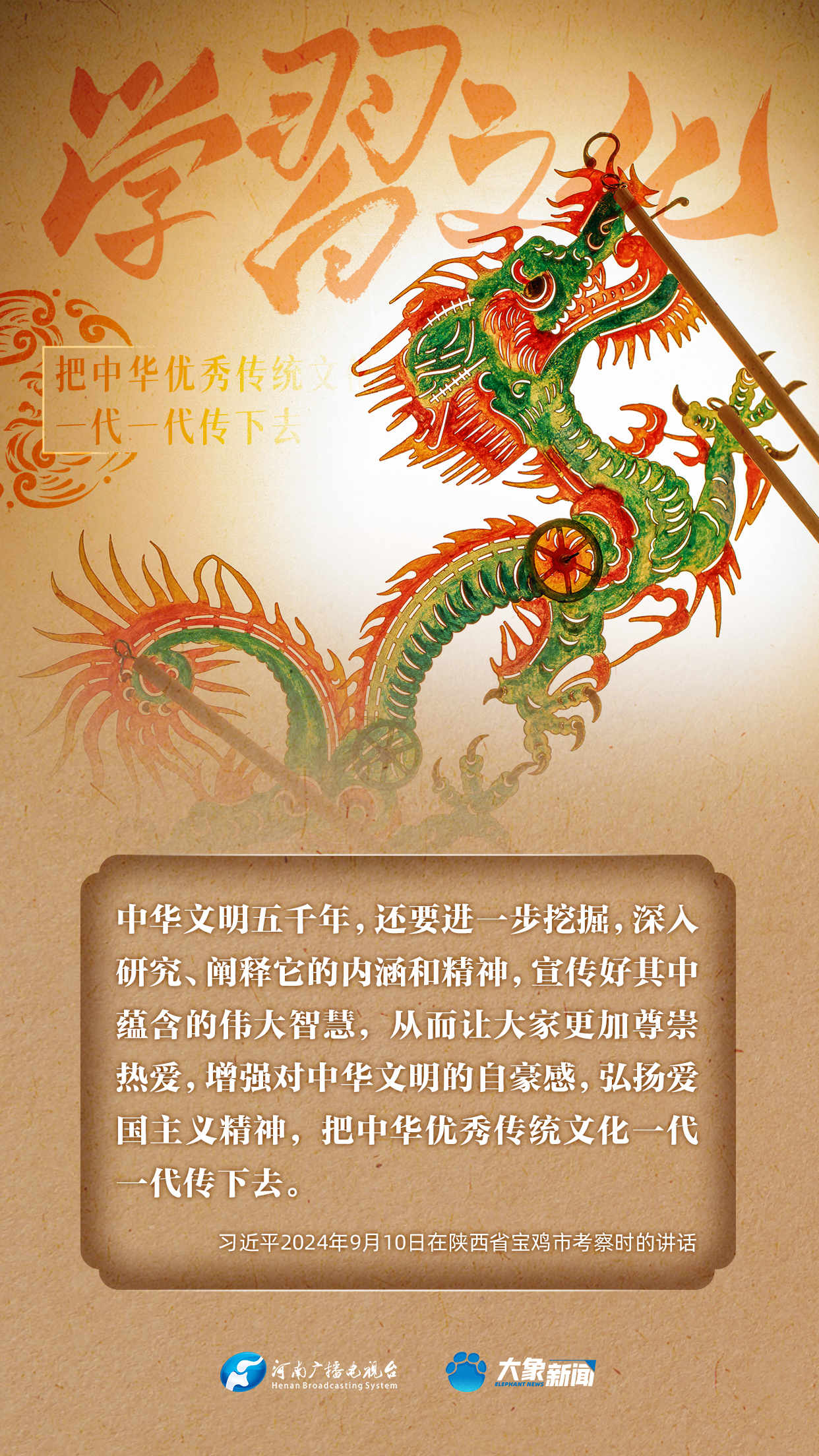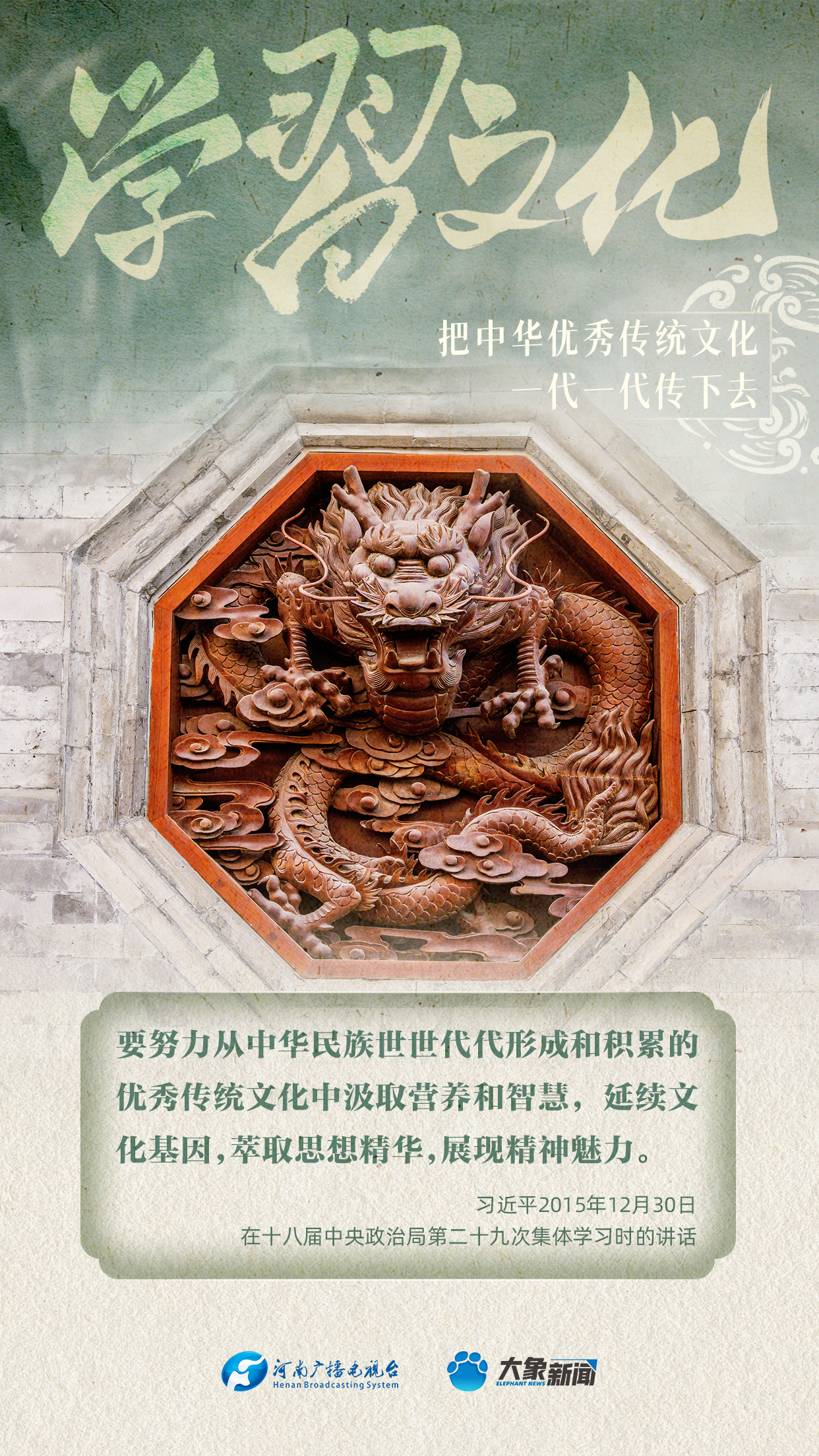 習(xí)近平總書(shū)記高度重視中華優(yōu)秀傳統(tǒng)文化的傳承發(fā)展,發(fā)表了一系列重要講話,大象新聞邀您一起學(xué)思踐悟,身體力行。