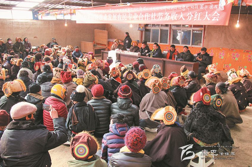 石渠縣召開(kāi)農(nóng)民專(zhuān)業(yè)合作社勞務(wù)收入分紅大會(huì)。石宣供稿