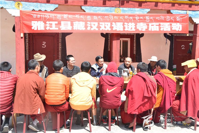 藏漢雙語宣講團(tuán)把黨委政府的聲音傳遞到雅江縣亞葉寺。