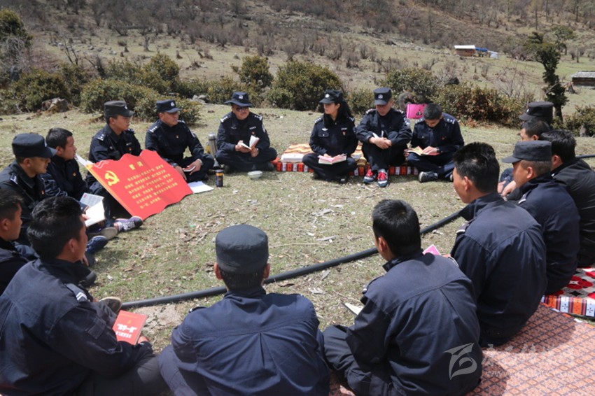 九龍縣公安局黨員在蟲草山上一邊為群眾服務,一邊開展“兩學一做”學習教育。本網資料庫圖