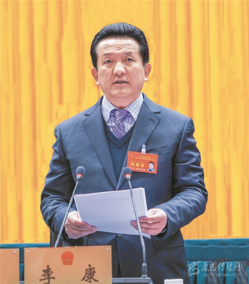 劉成鳴在主席臺(tái)就座 李康主持 肖友才作政府工作報(bào)告