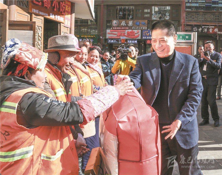 本網(wǎng)訊(記者 鄧安華 楊杰 文/圖)新春佳節(jié)來臨之際,1月22日下午,州委書記劉成鳴先后深入康定市將軍橋環(huán)衛(wèi)點和情歌廣場,親切看望和慰問堅守一線的電力職工、環(huán)衛(wèi)工人和執(zhí)勤民警,為他們送去了誠摯的問候和新春的祝福,并送上了慰問金和禮品。