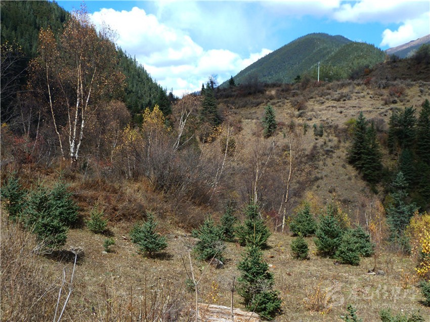 甘孜道孚的一處人工造林點(diǎn)已經(jīng)長出了新的小樹苗。