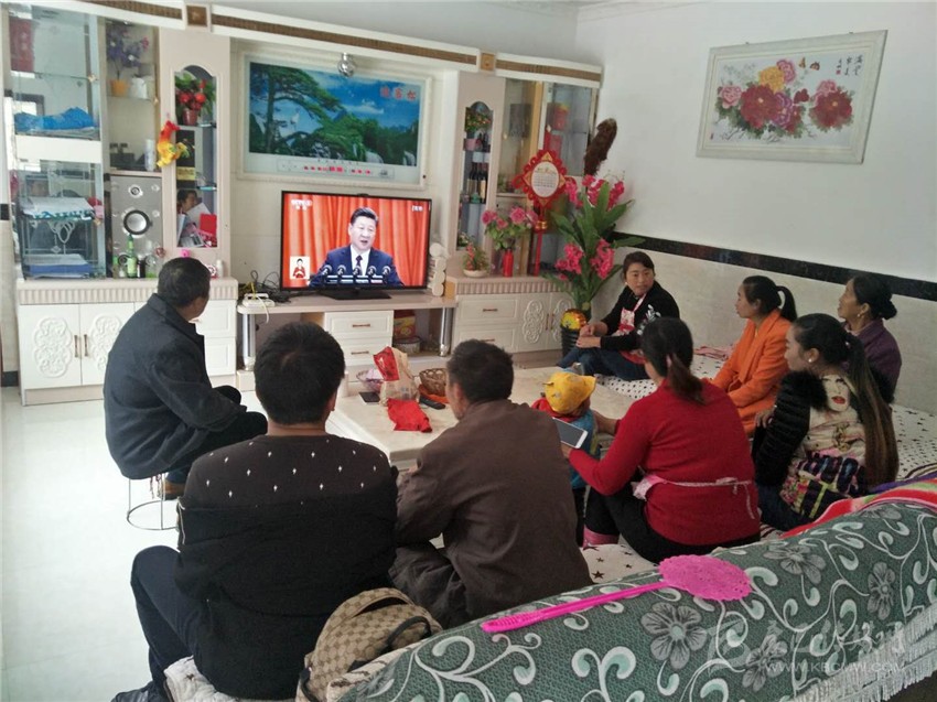 金剛村所有黨員和支部共建共創(chuàng)單位的干部職工,康定市群工局工作人員一同聚在了村支部書記毛芝榮家中收看黨的十九大開幕會(huì)。