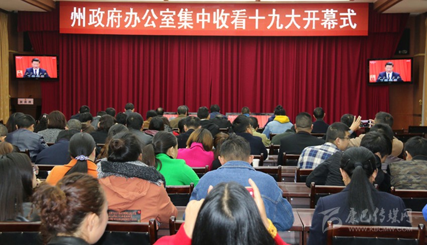 中國(guó)共產(chǎn)黨第十九次全國(guó)代表大會(huì)18日上午在人民大會(huì)堂開幕。習(xí)近平代表第十八屆中央委員會(huì)向大會(huì)作了題為《決勝全面建成小康社會(huì) 奪取新時(shí)代中國(guó)特色社會(huì)主義偉大勝利》的報(bào)告?!安煌跣模斡浭姑?,高舉中國(guó)特色社會(huì)主義偉大旗幟,決勝全面建成小康社會(huì),奪取新時(shí)代中國(guó)特色社會(huì)主義偉大勝利,為實(shí)現(xiàn)中華民族偉大復(fù)興的中國(guó)夢(mèng)不懈奮斗。”上午9時(shí),我州機(jī)關(guān)單位、學(xué)校、農(nóng)村牧區(qū)、企事業(yè)單位、駐軍等干部職工和農(nóng)牧民群眾圍坐在電視機(jī)旁,聚精會(huì)神聆聽十九大報(bào)告,觸摸獲得感,說說心里話。藍(lán)圖催人奮進(jìn),成就鼓舞人心,全州各族人民表示,要在黨的堅(jiān)強(qiáng)領(lǐng)導(dǎo)下,擼起袖子加油干,與全國(guó)人民一道豪邁步入小康社會(huì)。