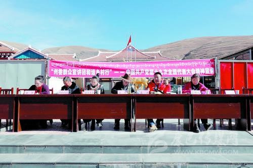本網(wǎng)訊(縣委中心報(bào)道組 葉強(qiáng)平 文/圖)11月17日下午,理塘縣上木拉鄉(xiāng)政府院壩里十分熱鬧,黨旗飄揚(yáng),國(guó)旗鮮艷,“州委群眾宣講團(tuán)和諧鄉(xiāng)村行——中國(guó)共產(chǎn)黨第十九次全國(guó)代表大會(huì)精神宣講”的橫幅格外顯眼,一場(chǎng)特殊的“趕場(chǎng)會(huì)”紅火上演。
