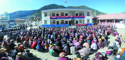 把講臺搬到院壩,擺上幾張藏桌,聽眾們席地圍坐在一起,頭頂上陽光融融,會場上溫情融融,黨的十九大精神宣講就這樣帶著“泥土”氣息來到群眾身邊。